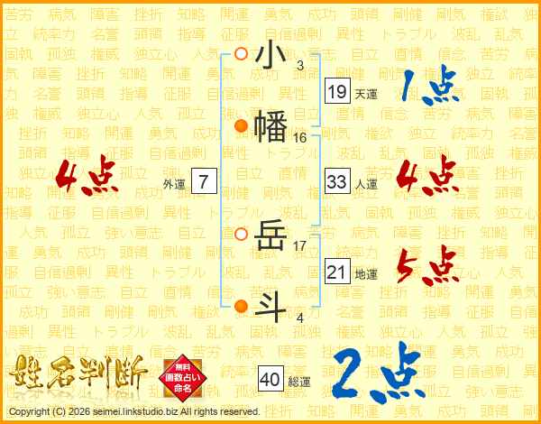 小幡岳斗さんの総運は40画の2点!