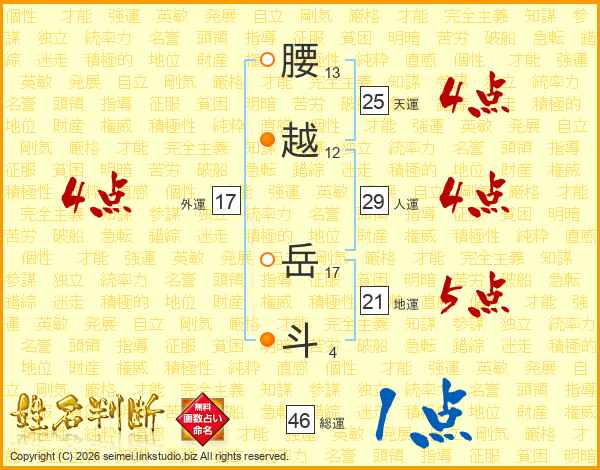 腰越岳斗さんの外運は17画の4点!