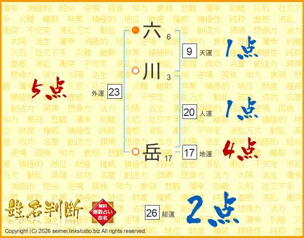 六川岳さんの総運は26画の2点!