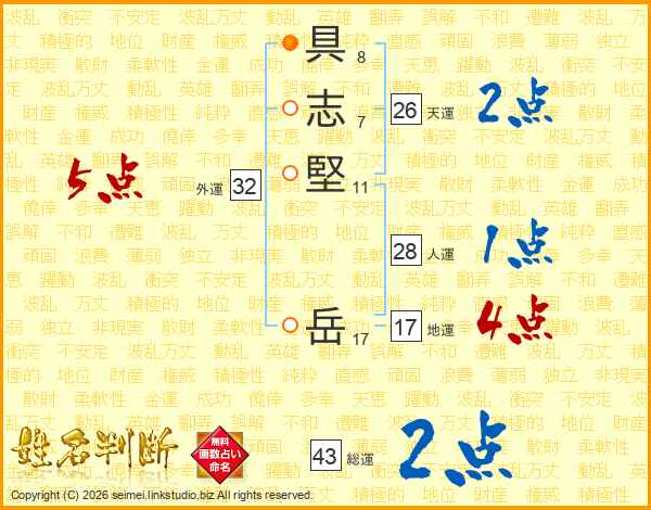 具志堅岳さんの天運は26画の2点!