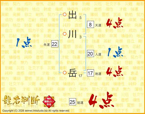 出川岳さんの総運は25画の4点!