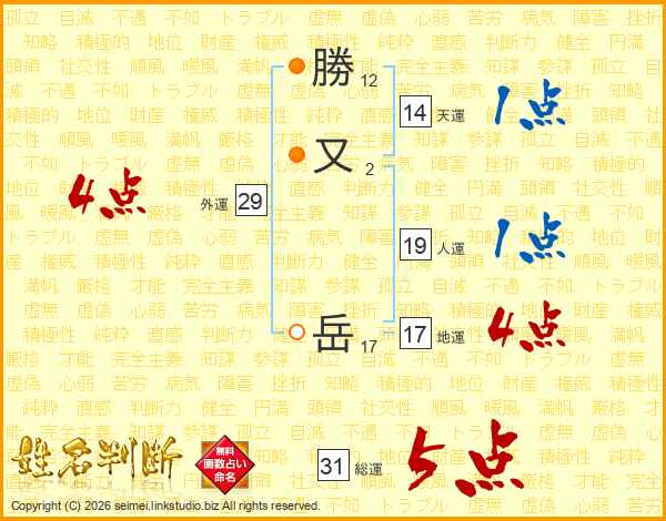 勝又岳さんの天運は14画の1点!