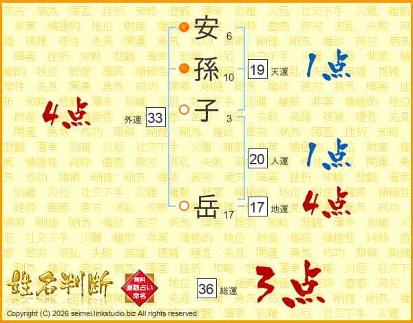 安(6画)孫(10画)子(3画) 岳(17画)
