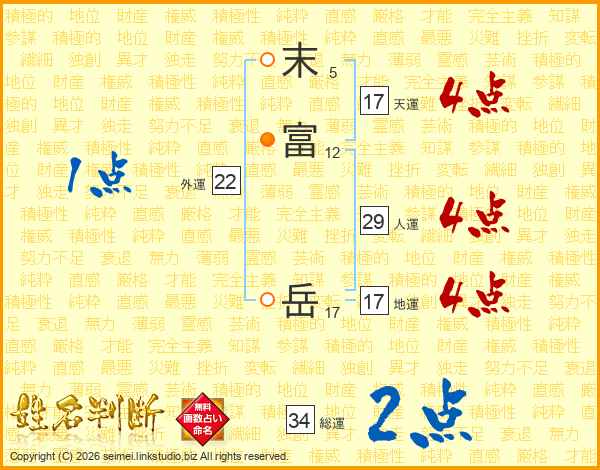 末富岳さんの天運は17画の4点!