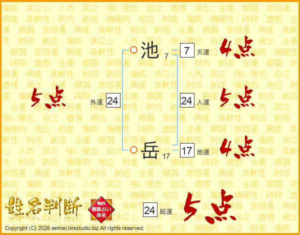 池岳さんの総運は24画の5点!