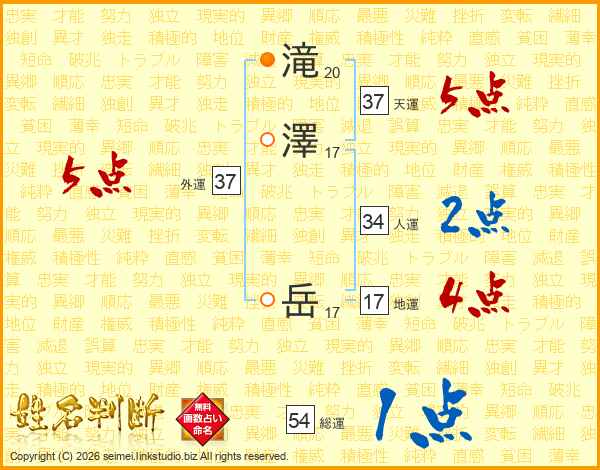 滝(20画)澤(17画) 岳(17画)