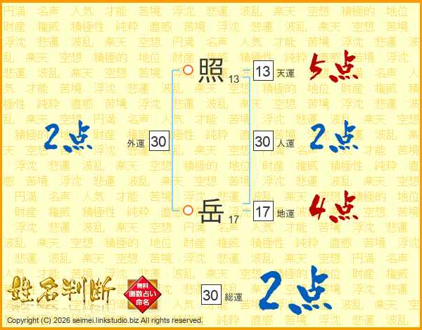 照岳さんの総運は30画の2点!