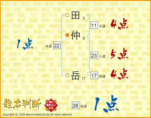 田仲岳さんの天運は11画の4点!