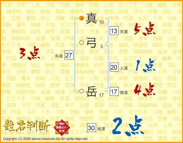 真弓岳さんの総運は30画の2点!