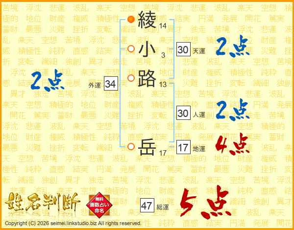 綾小路岳さんの外運は34画の2点!