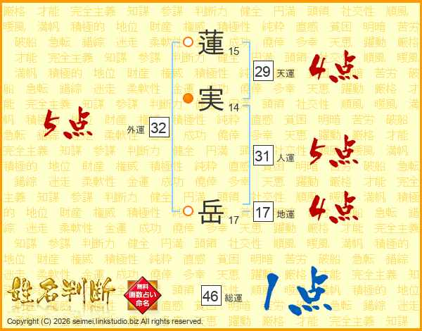 蓮実岳さんの総運は46画の1点!