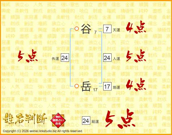谷岳さんの総運は24画の5点