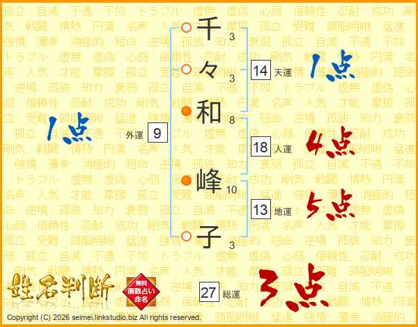 千々和峰子さんの総運は27画の3点!
