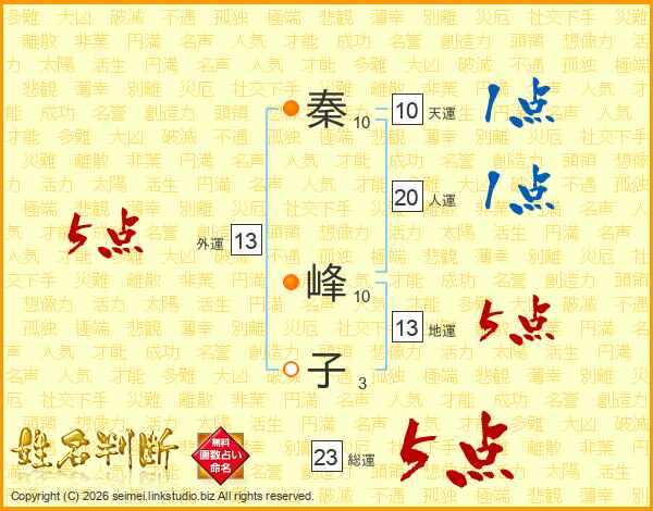 秦峰子さんの総運は23画の5点!