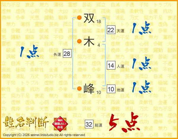 双木峰さんの総運は32画の5点!