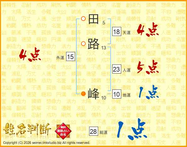 田路峰さんの人運は23画の5点!