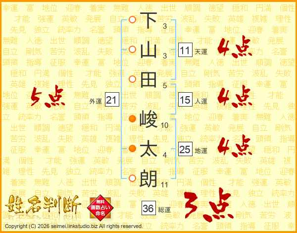 下山田峻太朗さんの天運は11画の4点!