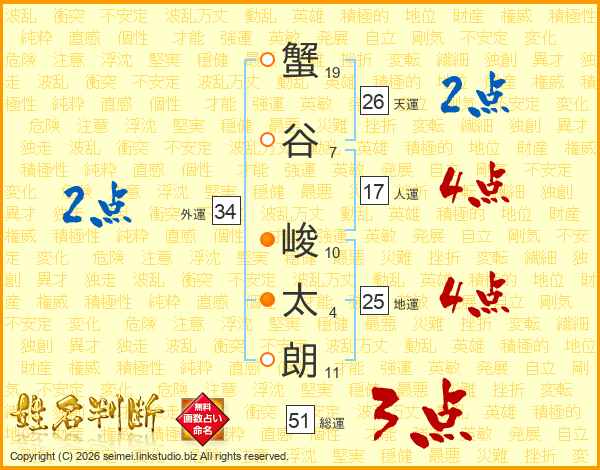 蟹谷峻太朗さんの天運は26画の2点!