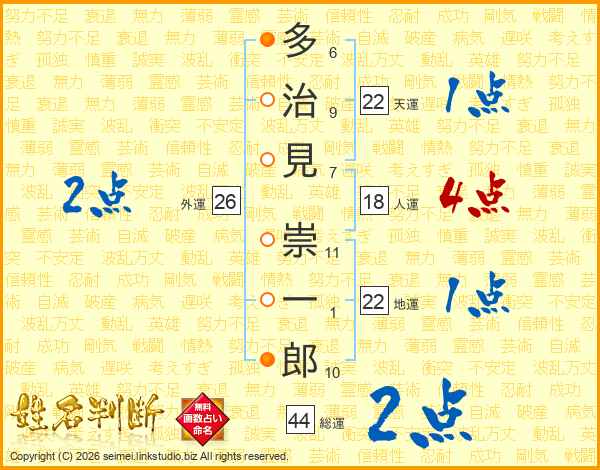 多治見崇一郎さんの総運は44画の2点!