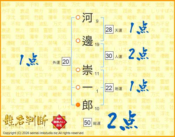 河邊崇一郎さんの地運は22画の1点!