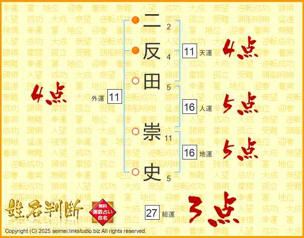二反田崇史さんの天運は11画の4点!
