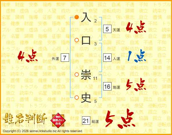 入口崇史さんの総運は21画の5点!