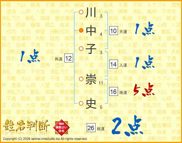 川中子崇史さんの総運は26画の2点!
