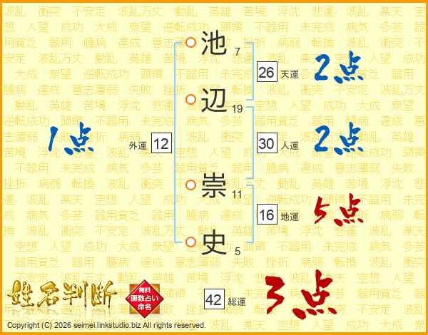 池辺崇史さんの天運は26画の2点!