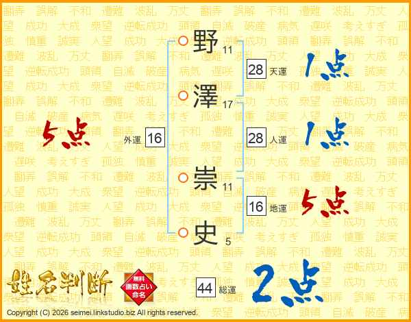 野澤崇史さんの総運は44画の2点!