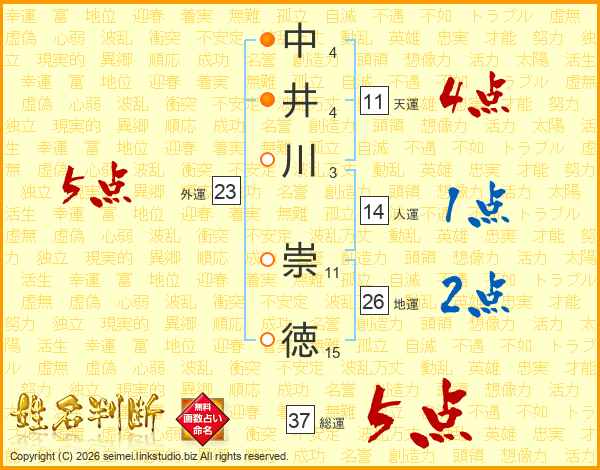 中井川崇徳さんの天運は11画の4点!