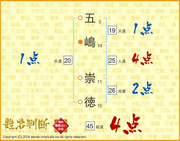 五嶋崇徳さんの総運は45画の4点!