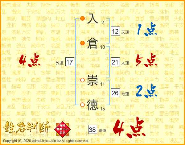 入倉崇徳さんの地運は26画の2点!