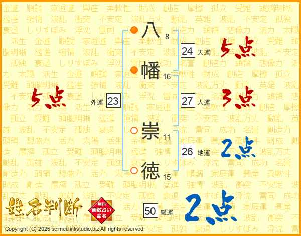 八幡崇徳さんの総運は50画の2点!