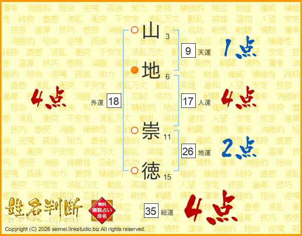山地崇徳さんの総運は35画の4点!