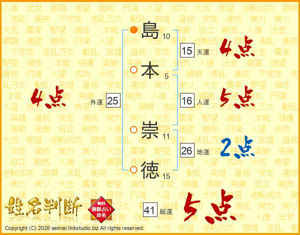 島本崇徳さんの総運は41画の5点!