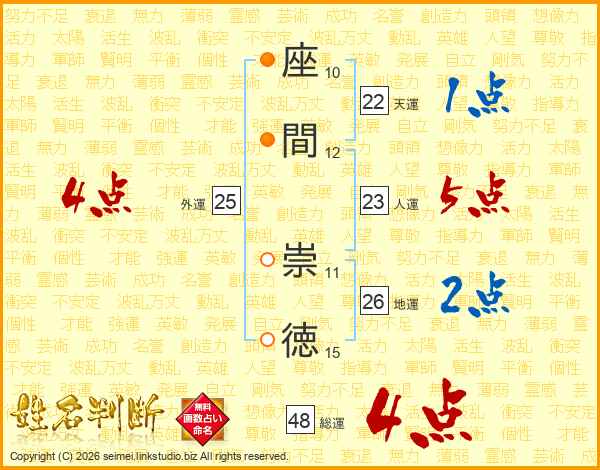 座間崇徳さんの総運は48画の4点!