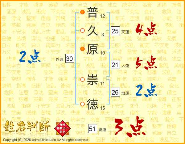 普久原崇徳さんの天運は25画の4点!