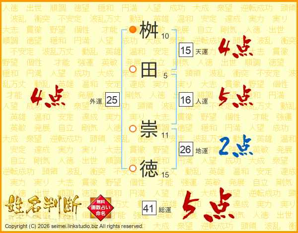 桝田崇徳さんの総運は41画の5点!