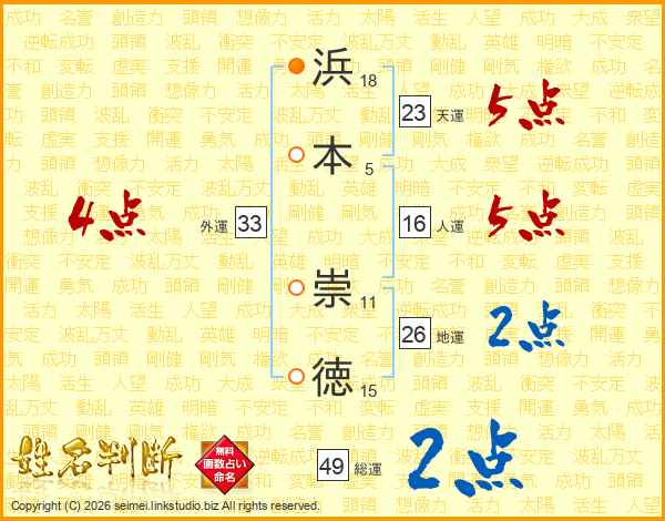 浜本崇徳さんの天運は23画の5点!