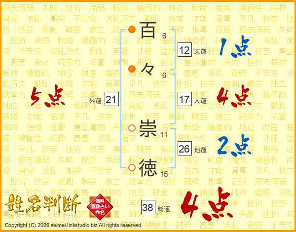 百々崇徳さんの総運は38画の4点!