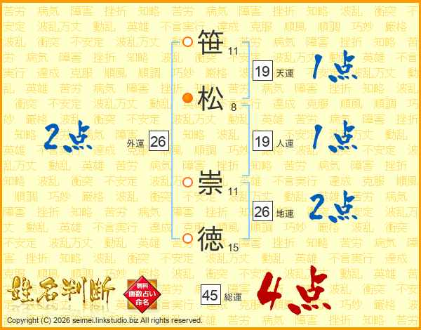 笹松崇徳さんの総運は45画の4点!