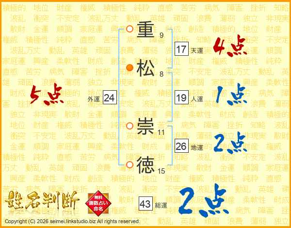 重松崇徳さんの地運は26画の2点!