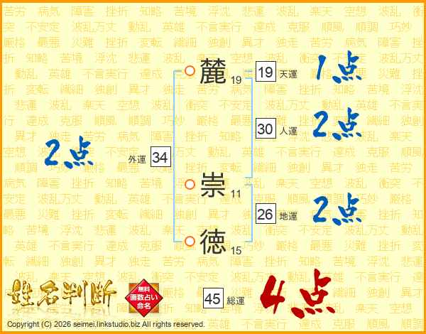 麓崇徳さんの総運は45画の4点!