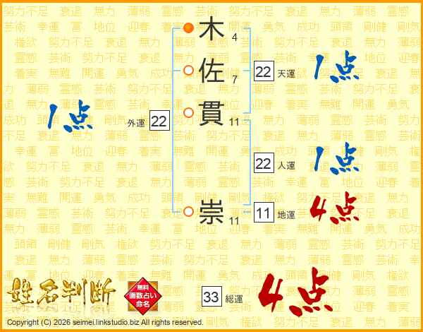 木佐貫崇さんの地運は11画の4点!