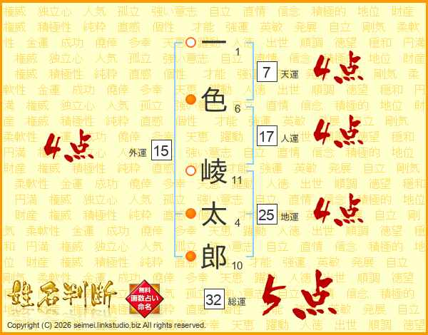 一色崚太郎さんの天運は7画の4点!