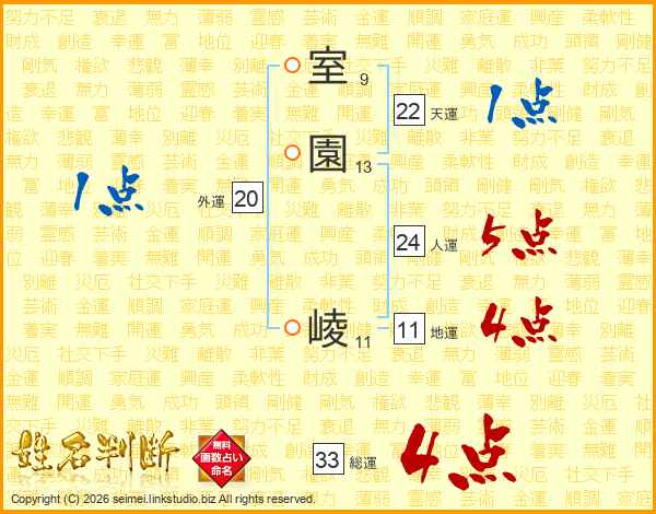 室園崚さんの総運は33画の4点!