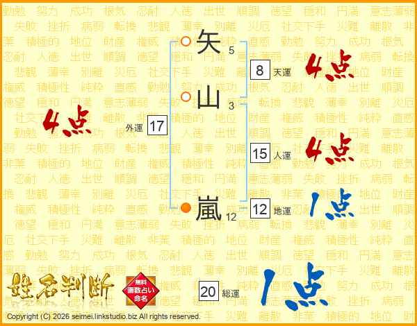 矢山嵐さんの外運は17画の4点!