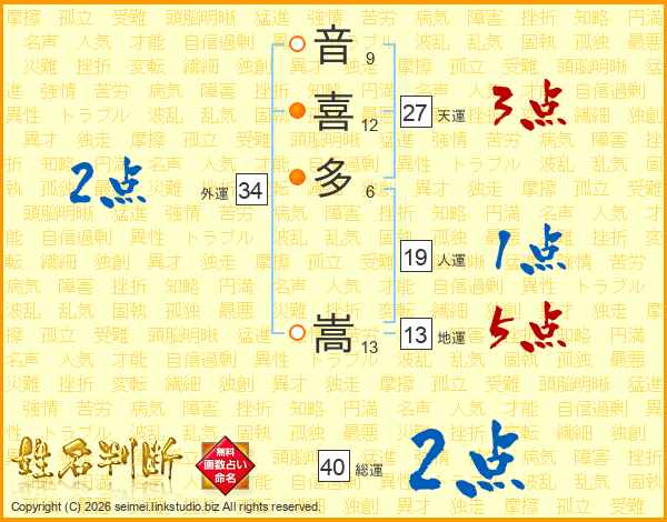 音喜多嵩さんの総運は40画の2点!