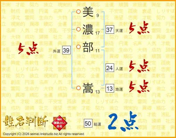 美濃部嵩さんの天運は37画の5点!
