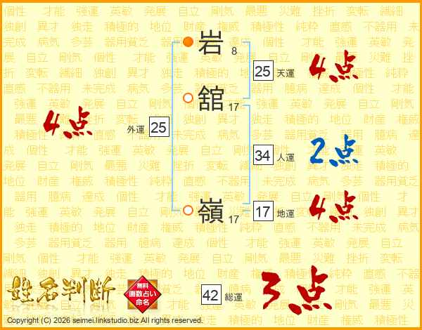 岩舘嶺さんの人運は34画の2点!
